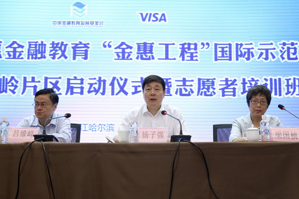 由中國(guó)金融教育發(fā)展基金會(huì)主辦的“中國(guó)普惠金融教育‘金惠工程’國(guó)際示范區(qū)啟動(dòng)儀式暨志愿者培訓(xùn)班”7月6日在哈爾濱舉辦。黑龍江省副省長(zhǎng)呂維峰、中國(guó)人民銀行行長(zhǎng)助理?xiàng)钭訌?qiáng)、中國(guó)金融教育發(fā)展基金會(huì)副秘書長(zhǎng)梁國(guó)楨及VISA公司高級(jí)副總裁、全球金融普惠負(fù)責(zé)人司徒鴻等出席啟動(dòng)儀式。