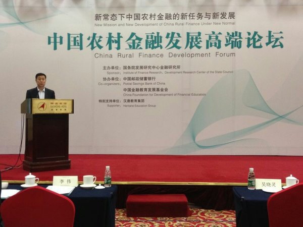 2015年4月26日,由國務(wù)院發(fā)展研究中心金融研究所主辦,中國郵政儲蓄銀行、中國金融教育發(fā)展基金會協(xié)辦,漢唐教育集團特別支持的中國農(nóng)村金融發(fā)展論壇在京隆重召開。論壇主題為“新常態(tài)下中國農(nóng)村金融的新任務(wù)與新發(fā)展”。