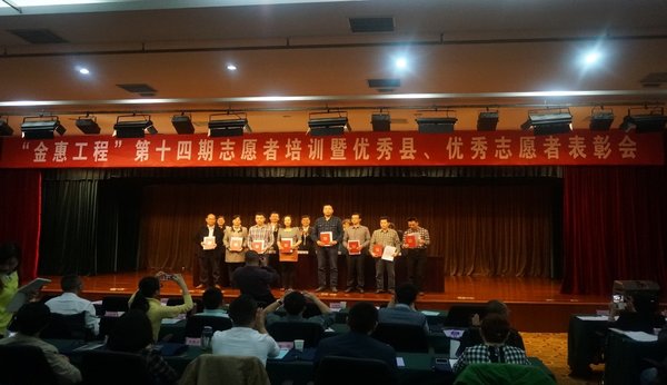 會議對2014年評估驗(yàn)收中取得優(yōu)秀成績的田東縣、宣漢縣、屏山縣、敘永縣、白水縣、隴縣、尉氏縣進(jìn)行了表彰,并頒發(fā)“金惠工程優(yōu)秀縣”獎牌。對廣西、陜西、云南、湖南、河南、山西、江西、四川8省(區(qū))的108名優(yōu)秀志愿者、優(yōu)秀組織者進(jìn)行了表彰,并頒發(fā)優(yōu)秀志愿者、優(yōu)秀組織者證書。