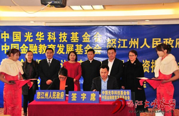 2014年12月21日,中國(guó)光華科技基金會(huì)、中國(guó)金融教育發(fā)展基金會(huì)與怒江傈僳族自治州人民政府在六庫舉行簽字儀式,共同簽署戰(zhàn)略合作框架協(xié)議。