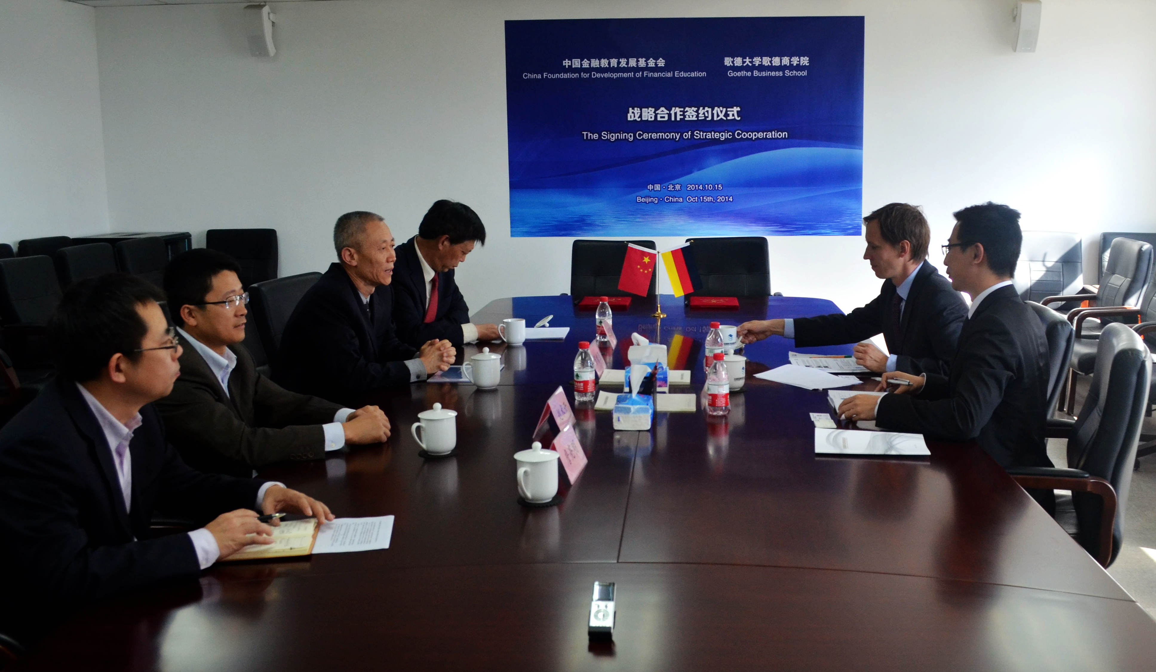 2014年10月15日,中國金融教育發(fā)展基金會與德國法蘭克福歌德大學歌德商學院在京簽署戰(zhàn)略合作協(xié)議。賀增強副理事長首先代表中國金融教育發(fā)展基金會致歡迎辭,并介紹基金會的基本情況。他指出:雙方合作意義深遠前景廣闊,有利于促進中國金融從業(yè)人員培訓、教育水平的提升,通過交流與合作,有利于我們吸收德國金融業(yè)的先進經(jīng)驗。