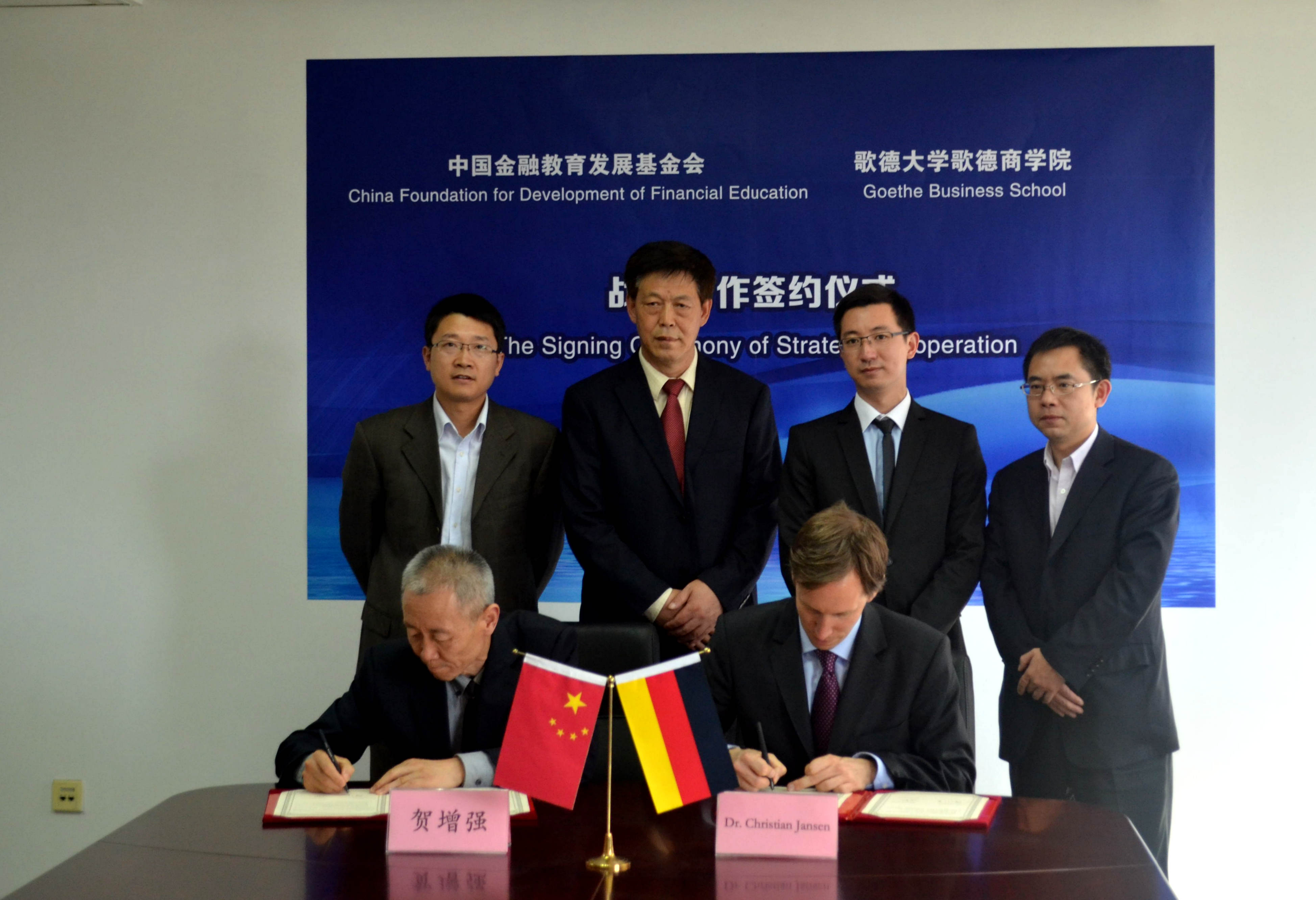 出席簽字儀式有:中國金融教育發(fā)展基金會劉墨海副秘書長、趙術開副秘書長;歌德大學歌德商學院中國項目部楊悅經(jīng)理。
