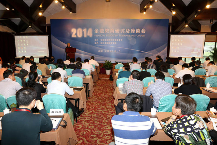由中國金融教育發(fā)展基金會主辦、浙江金融職業(yè)學(xué)院承辦的2014金融教育研討及座談會,于5月18日在杭州召開。本次會議的主題是:移動互聯(lián)時代,金融教育何去何從。全國人大財經(jīng)委員會副主任委員、中國金融教育發(fā)展基金會名譽理事長吳曉靈,中國金融教育發(fā)展基金會理事長初本德、中國人民銀行杭州中心支行行長張健華及學(xué)界業(yè)界專家出席會議并演講。會議由中國金融教育發(fā)展基金會副理事長賀增強主持。