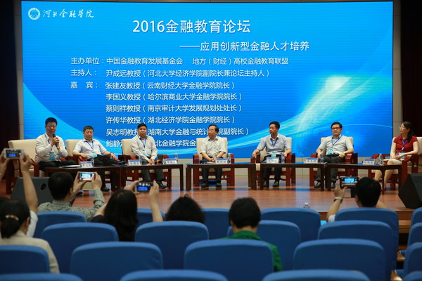 28日下午,在2016金融教育交流座談會上,云南財經(jīng)大學(xué)金融學(xué)院院長張建友、哈爾濱商業(yè)大學(xué)金融學(xué)院院長李國義、南京審計大學(xué)發(fā)展規(guī)劃處處長蔡則祥、湖北經(jīng)濟學(xué)院金融學(xué)院院長許傳華、湖南大學(xué)金融與統(tǒng)計學(xué)院副院長吳志明、河北金融學(xué)院金融系主任鮑靜海等6位嘉賓各抒己見,相互啟發(fā),圍繞經(jīng)濟新常態(tài)背景下應(yīng)用型金融人才的培養(yǎng)與創(chuàng)新,結(jié)合本校的做法和經(jīng)驗進行交流,為進一步推動全國高校應(yīng)用型金融人才培養(yǎng)工作走向深入建言獻策。