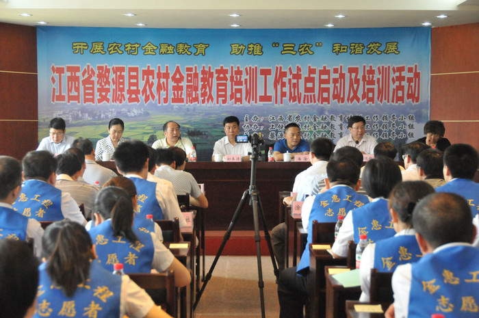 會(huì)議上,初本德理事長(zhǎng)指出江西省農(nóng)村金融教育項(xiàng)目試點(diǎn)工作在中國(guó)人民銀行南昌中心支行的大力推動(dòng)下,先期選擇在國(guó)定貧困縣遂川縣展開,取得了積極成效,主要是建立起1所農(nóng)村金融教育學(xué)校和23個(gè)農(nóng)村金融培訓(xùn)基地及農(nóng)村金融書屋;評(píng)定出信用農(nóng)戶6.52萬戶;引導(dǎo)金融部門先后投入600多萬元在農(nóng)村增配ATM機(jī)、POS機(jī)、移動(dòng)電話終端等新型支付結(jié)算工具;簡(jiǎn)化了農(nóng)戶信貸程序,使融資成本降低了18%,相關(guān)受益農(nóng)民達(dá)25萬多人。中國(guó)人民銀行南昌中支在認(rèn)真總結(jié)經(jīng)驗(yàn)的基礎(chǔ)上,決定擴(kuò)大試點(diǎn)范圍,啟動(dòng)了第二批試點(diǎn)工程,希望各試點(diǎn)縣以此次活動(dòng)為契機(jī),總結(jié)吸收遂川縣的成功經(jīng)驗(yàn),進(jìn)一步統(tǒng)一認(rèn)識(shí),相互交流,更好地掌握教育理念與培訓(xùn)技能,深入踐行“奉獻(xiàn)、友愛、互助、進(jìn)步”的志愿者精神,將金融知識(shí)帶進(jìn)廣大農(nóng)村的千家萬戶,帶進(jìn)中學(xué)的校園,使更多的人“掌握金融知識(shí),改變自身命運(yùn)”。